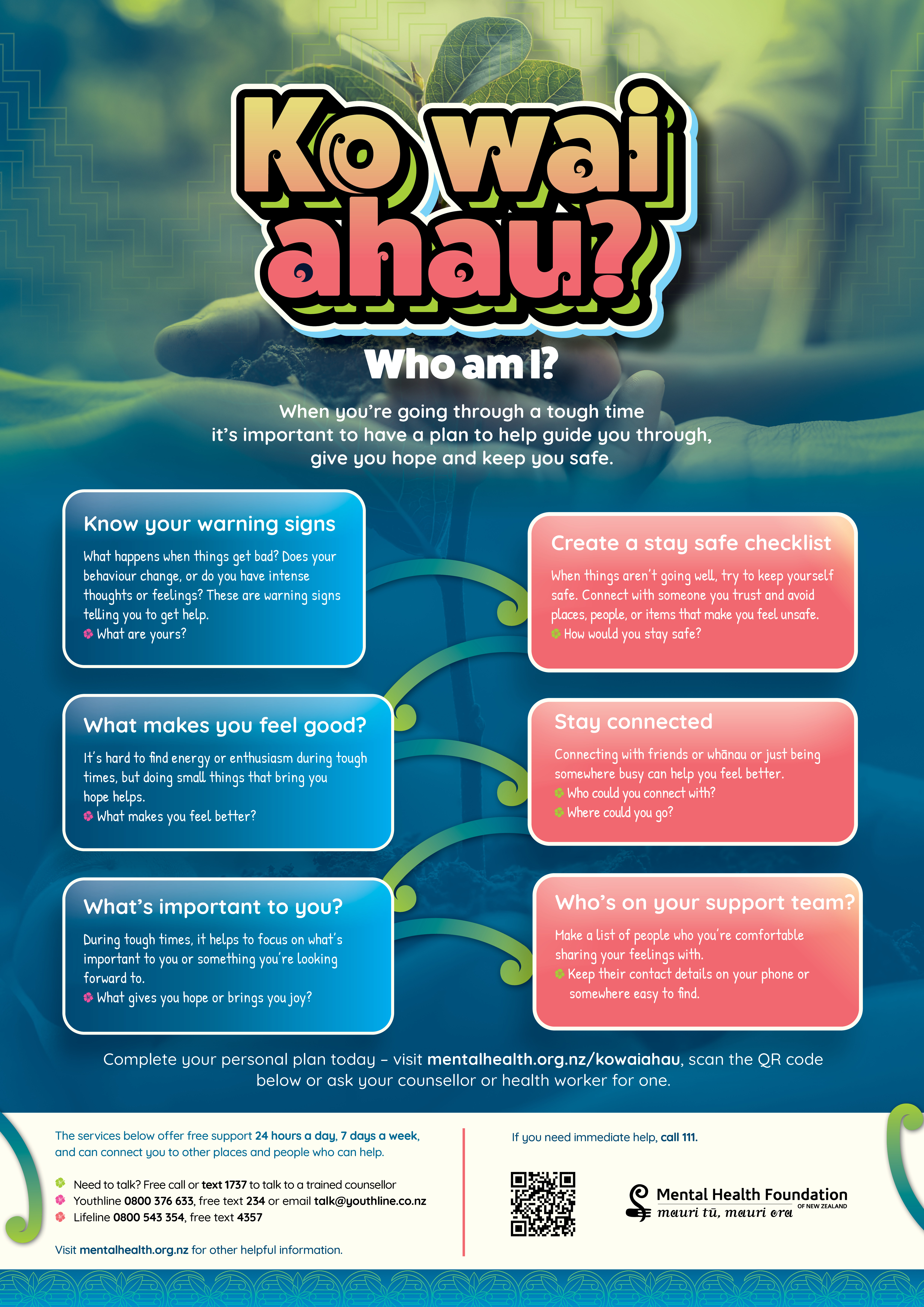 A series of posters that support the use of a personal plan when a rangatahi/young person is experiencing tough times or challenging thoughts.